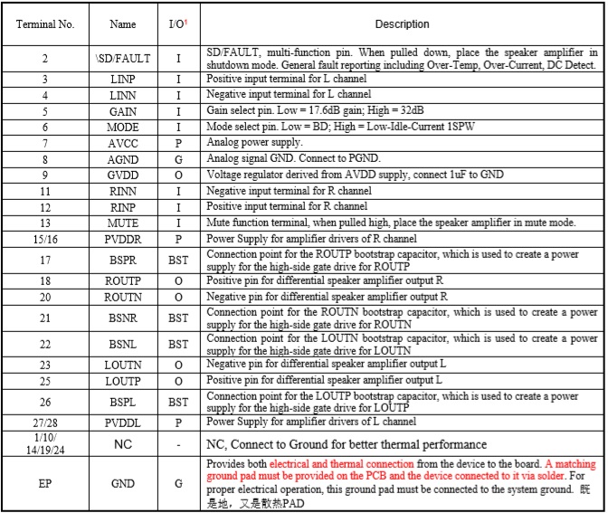 ・輸出功率(PBTL模式) 50W (VDD=22V, RL=4Ω, THD+N=1%)