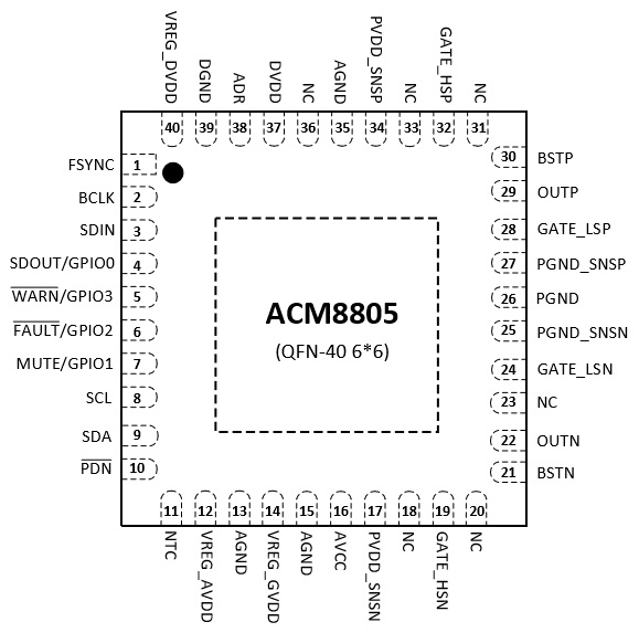 ACM8805(500W大功率單聲道D類功放IC、國內首款支持氮化鎵GaN音頻驅動器) |