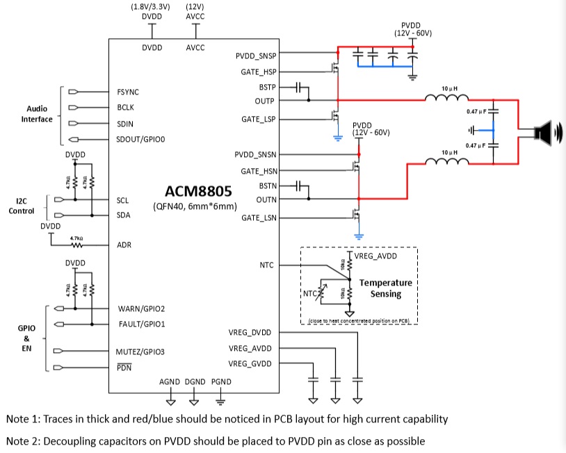 當前位置:首頁->產品展示->功放IC->ACM8805(500W大功率單聲道D類功放IC、國內首款支持氮化鎵GaN音頻驅動器) |