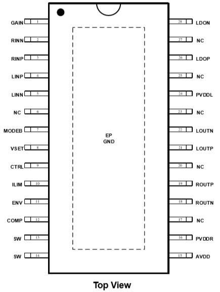 產品功能: 輸出功率(fIN=1kHz, RL=4Ω, BTL) ; VBAT = 4V, 2×10.6W (VOUT=9V, THD+N = 10%) ; VBAT = 4V, 2×8.6W (VOUT=9V, THD+N= 1%)