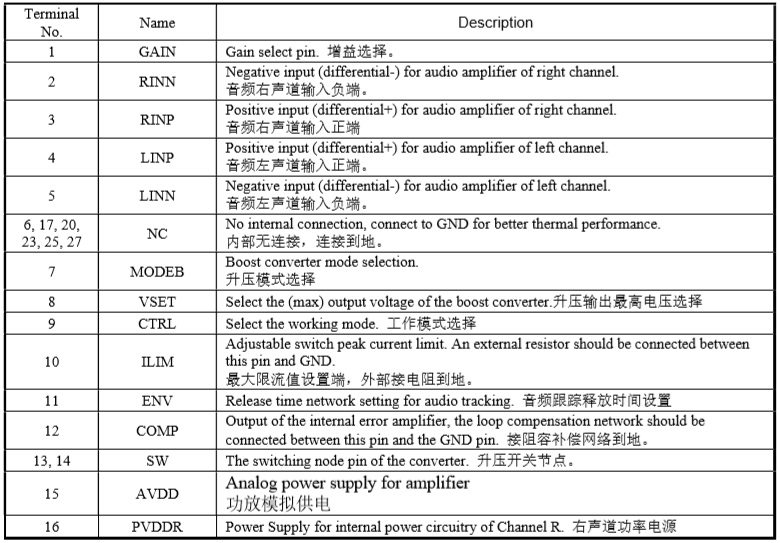 當前位置:首頁->產品展示->功放IC->HTA8998(內置全線性動態升壓、2×10W立體聲D類音頻功放IC)