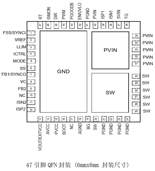 • 47 引腳 QFN 封裝(6mmx6mm)