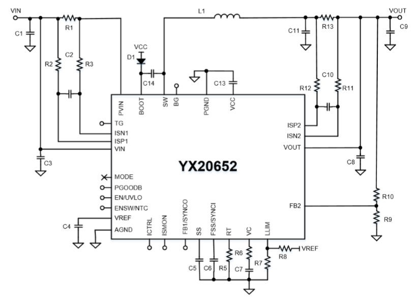 YX20652支持50KHz至3MHz的超寬開關頻率范圍,并集成了頻率擴頻(FSS)以實現EMI優化。 它還具有外部補償、可編程軟啟動功能,以減少啟動期間的浪涌電流。YX20652采用6mmx6mm 47引腳QFN封裝,帶有用于散熱的大裸露焊盤。